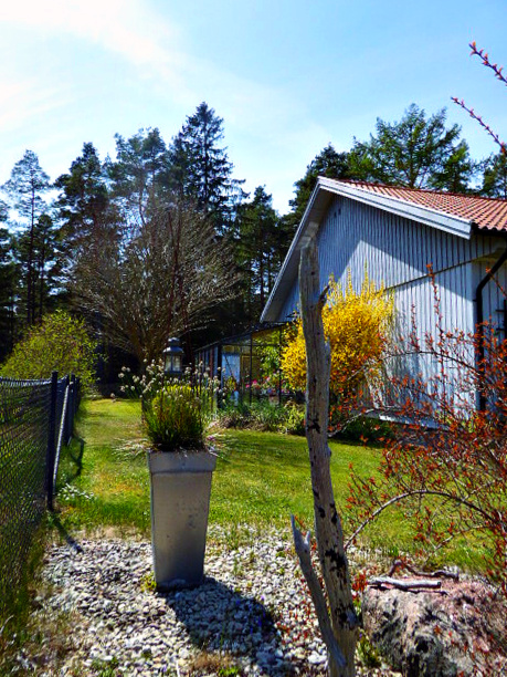 På gaveln till "lilla altanen" har det verkligen växt en massa under hösten, den milda vintern och våren. Men det är inget prioriterat jobb att ansa till. Det finns betydligt viktigare saker att ta sig an. Tyvärr är jag dock fortfarande hämmad av min dåliga vänstra sida med en till hälften orörlig hand och arm. Jag har dock lärt mig att ta mig upp och ner för våra små altantrappor, även om det är lite knepigt när man samtidigt ska bära nåt...